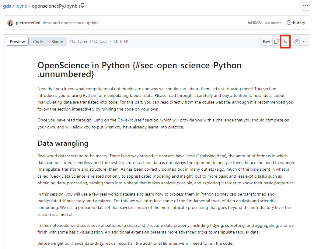 - Download the Jupyter Notebook of the session in your folder. Choose one jupyter notebook and click
