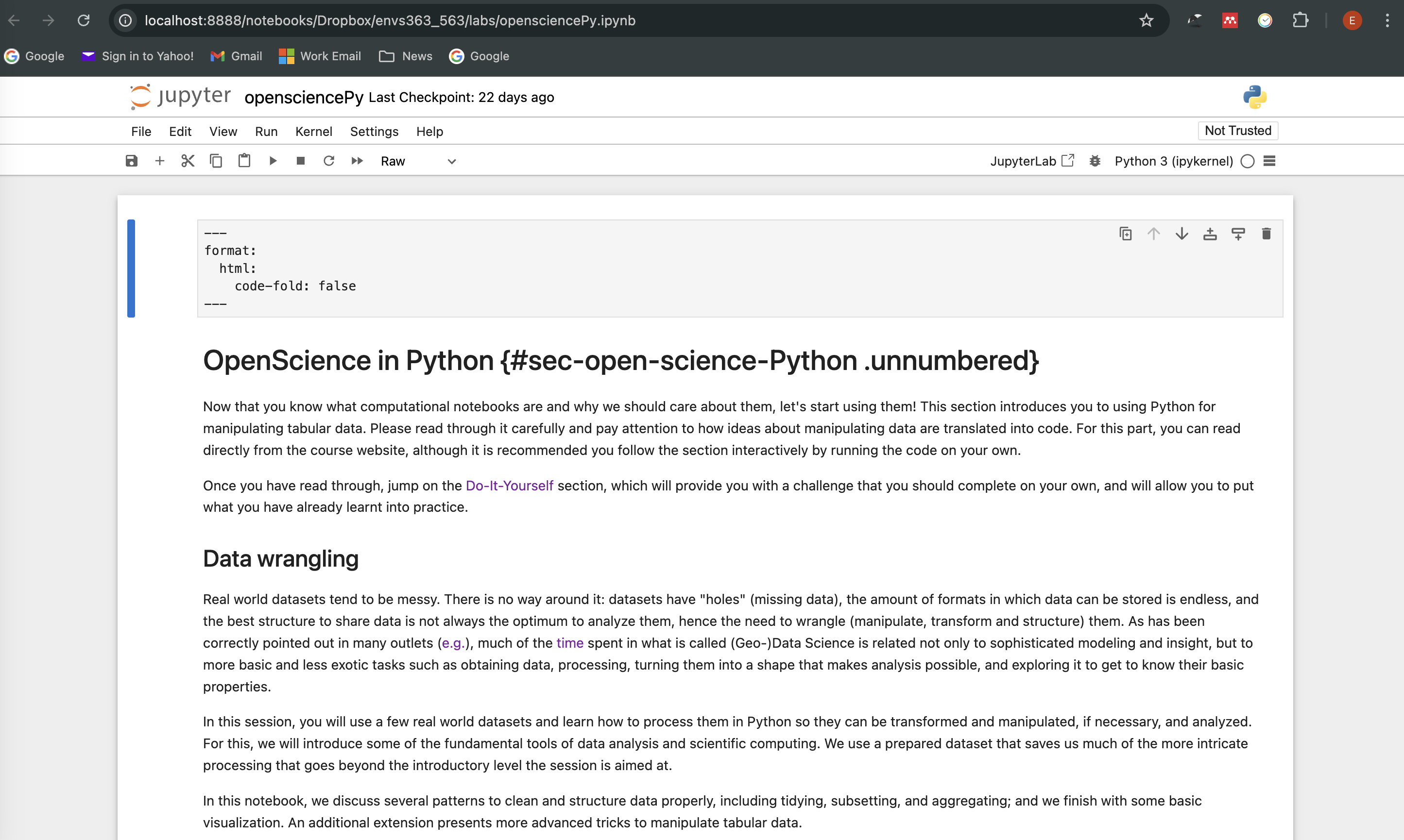 - Navigate to your course folder in and double click on the notebook downloaded in step 1.