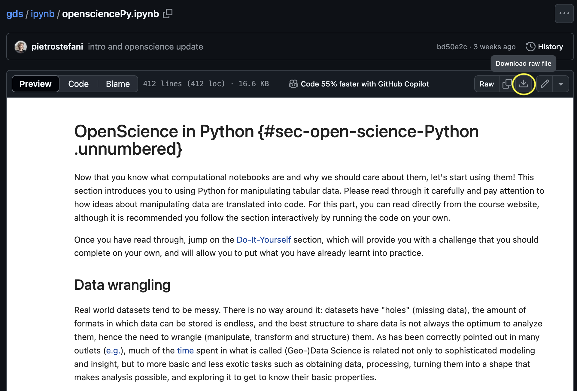 Dowload raw fileas shown below