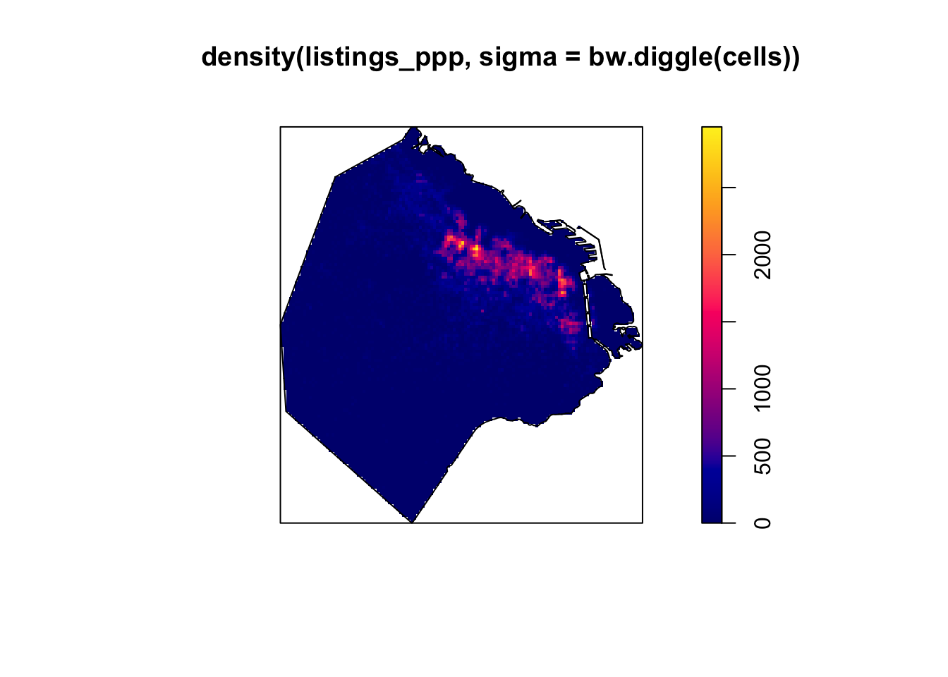 plot(density(listings_ppp,sigma=bw.diggle(cells)))