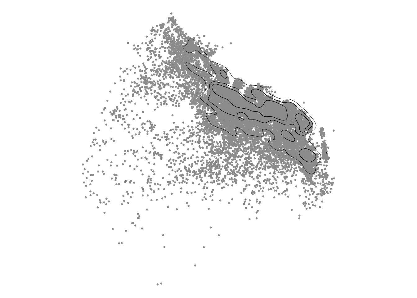 geom_sf(data=st_get_contour(skde1), colour=1, fill=NA, show.legend=FALSE) +