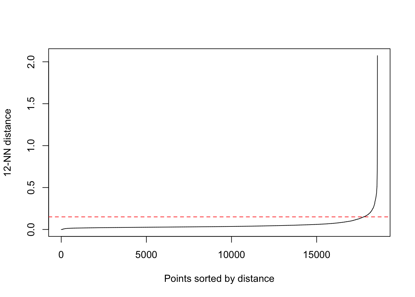 dbscan::kNNdistplot(locs.scaled,k=12)