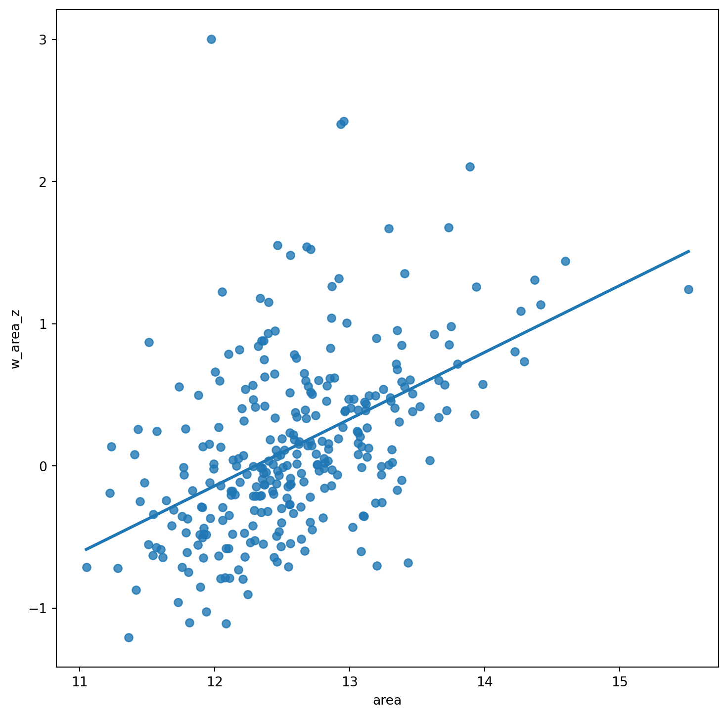 df["w_area_z"] = w_queen_score_zAnd the plot follows as before, but replacing the to the new standardised variables: