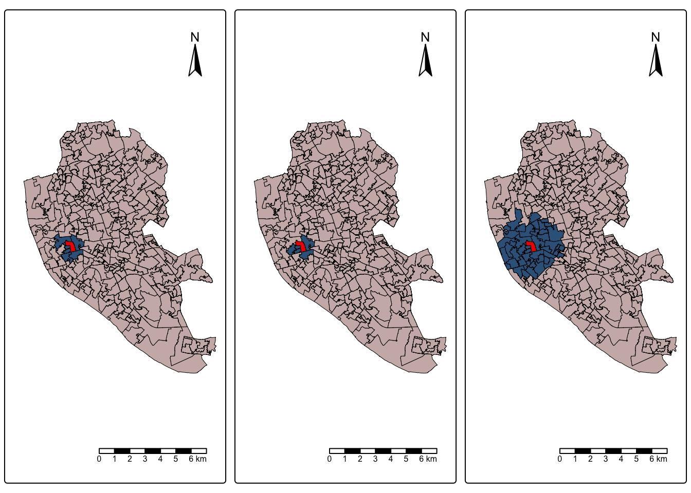 fill.legend = tm_legend(labels = "Distance neighbourhood", title = "")