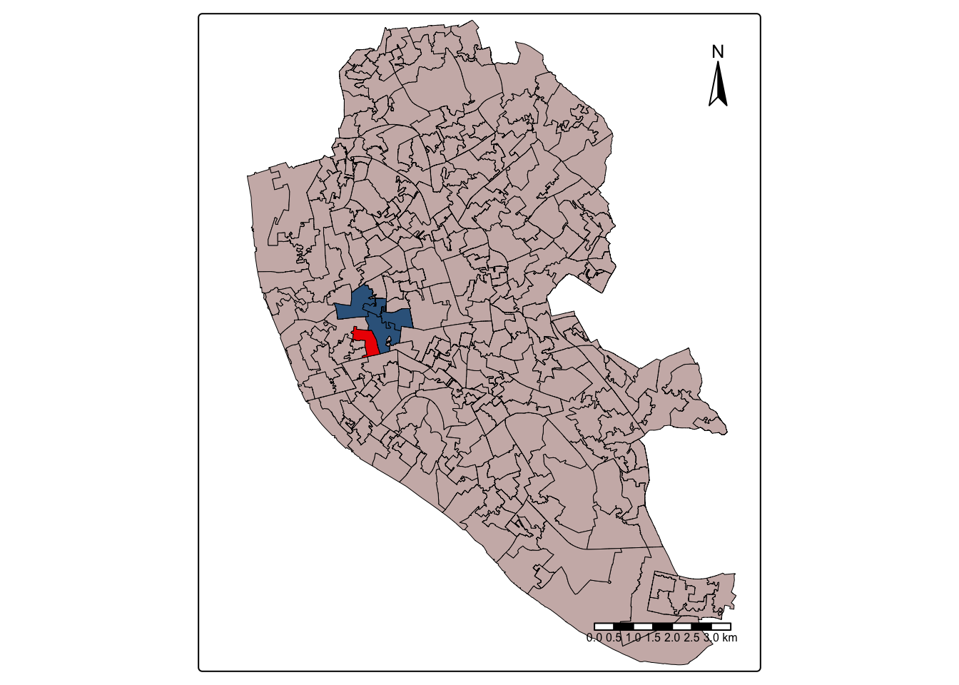 Note that the first output is a dataframe with one more row than the second. This is because the first output includes all the observations in MSOA with code E02001377, whereas the second output only includes the block neighbours that share MSOA with LSOA with code E91006512.