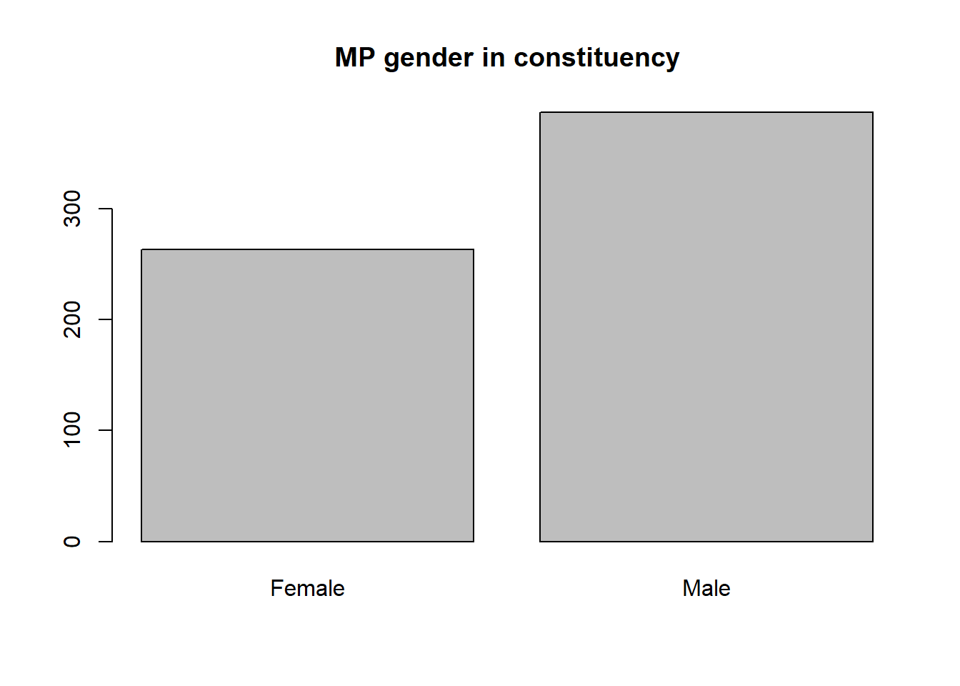 barplot(tab,main = "MP gender in constituency")