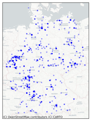 gdf.plot(ax=ax, markersize = 15, color = 'blue', marker = '*', alpha = 0.3)