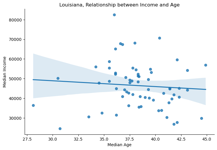 louisiana_df.rename(columns={'B19013_001E': 'median_income', 'B01002_001E': 'median_age'}, inplace=True)